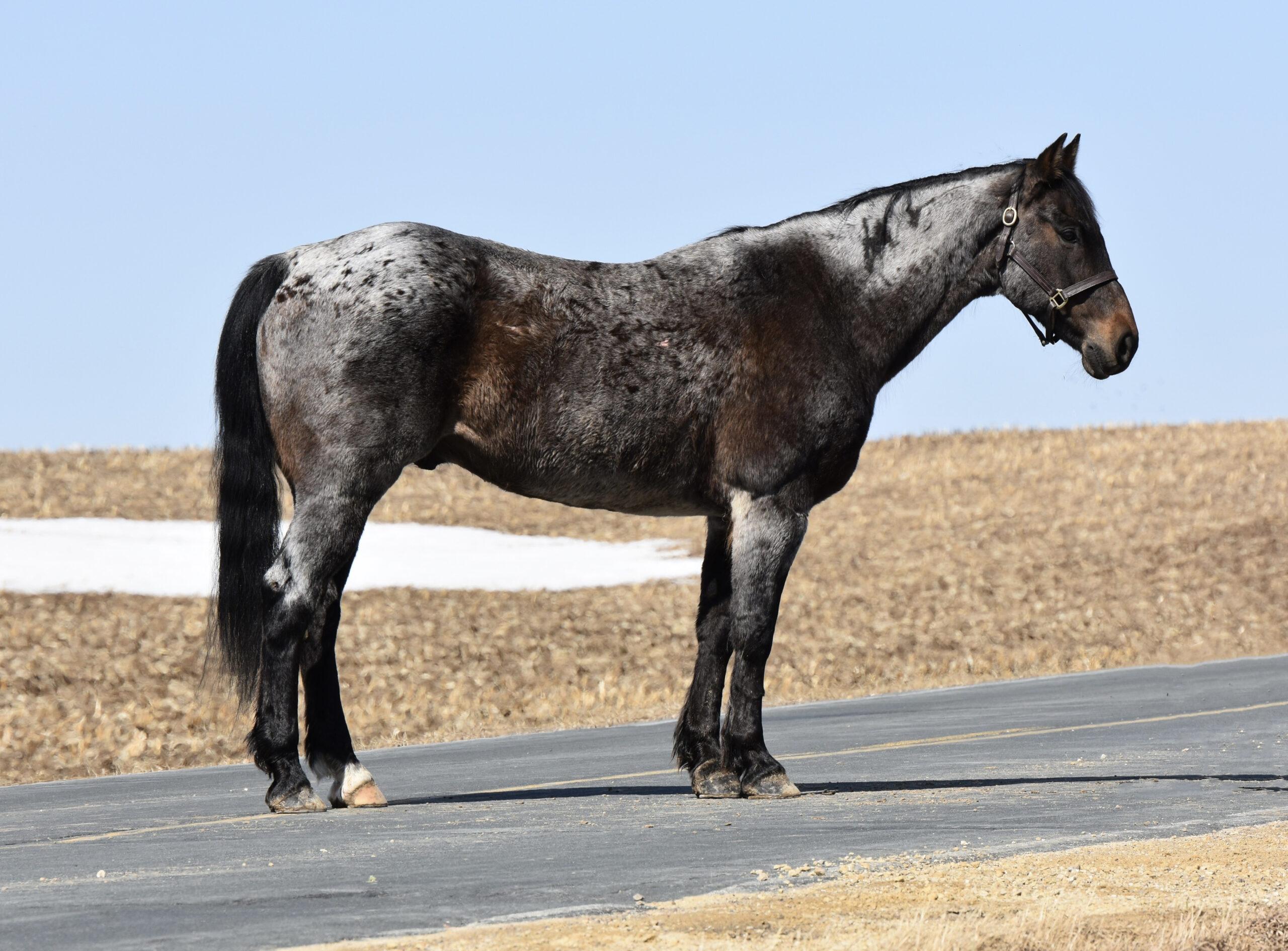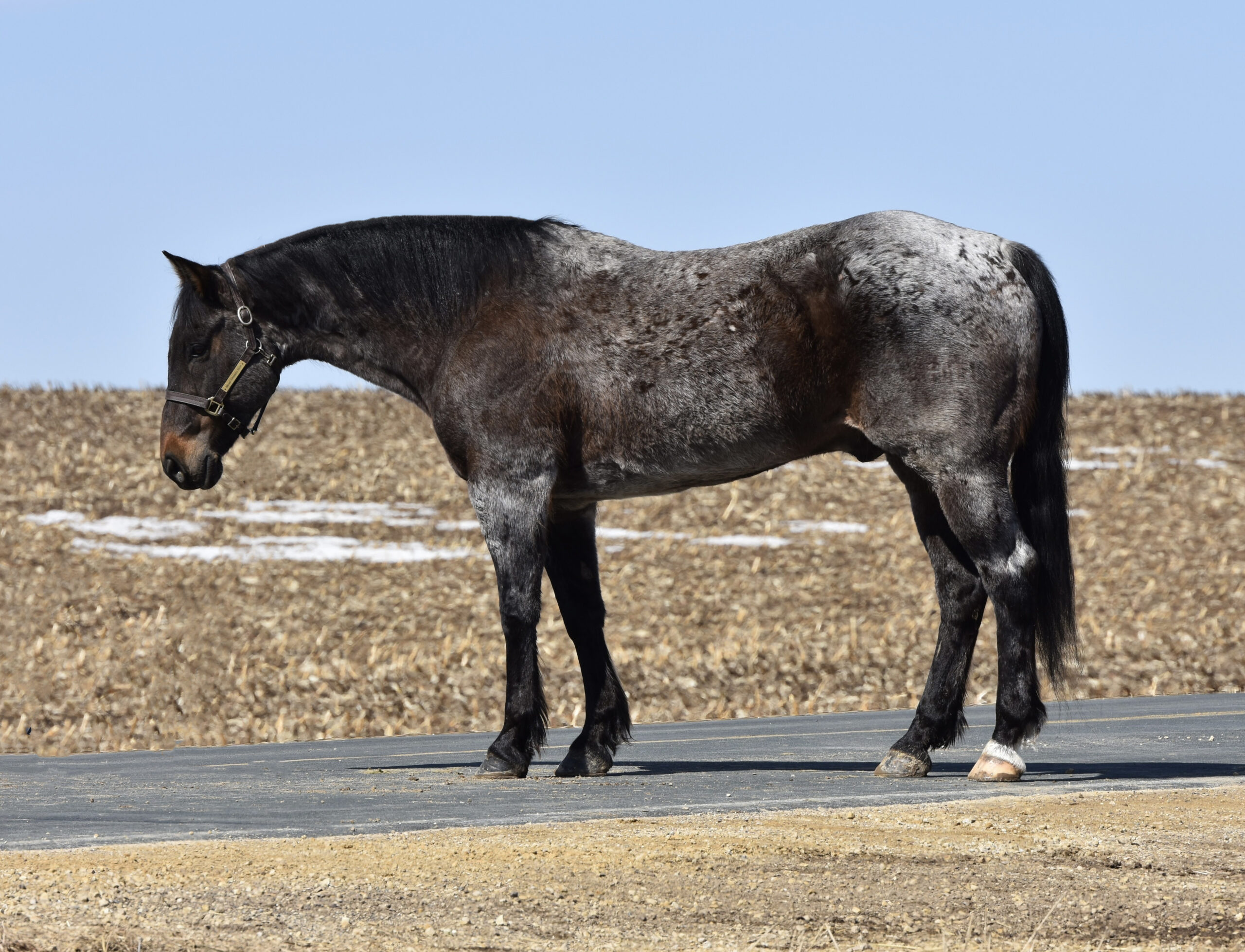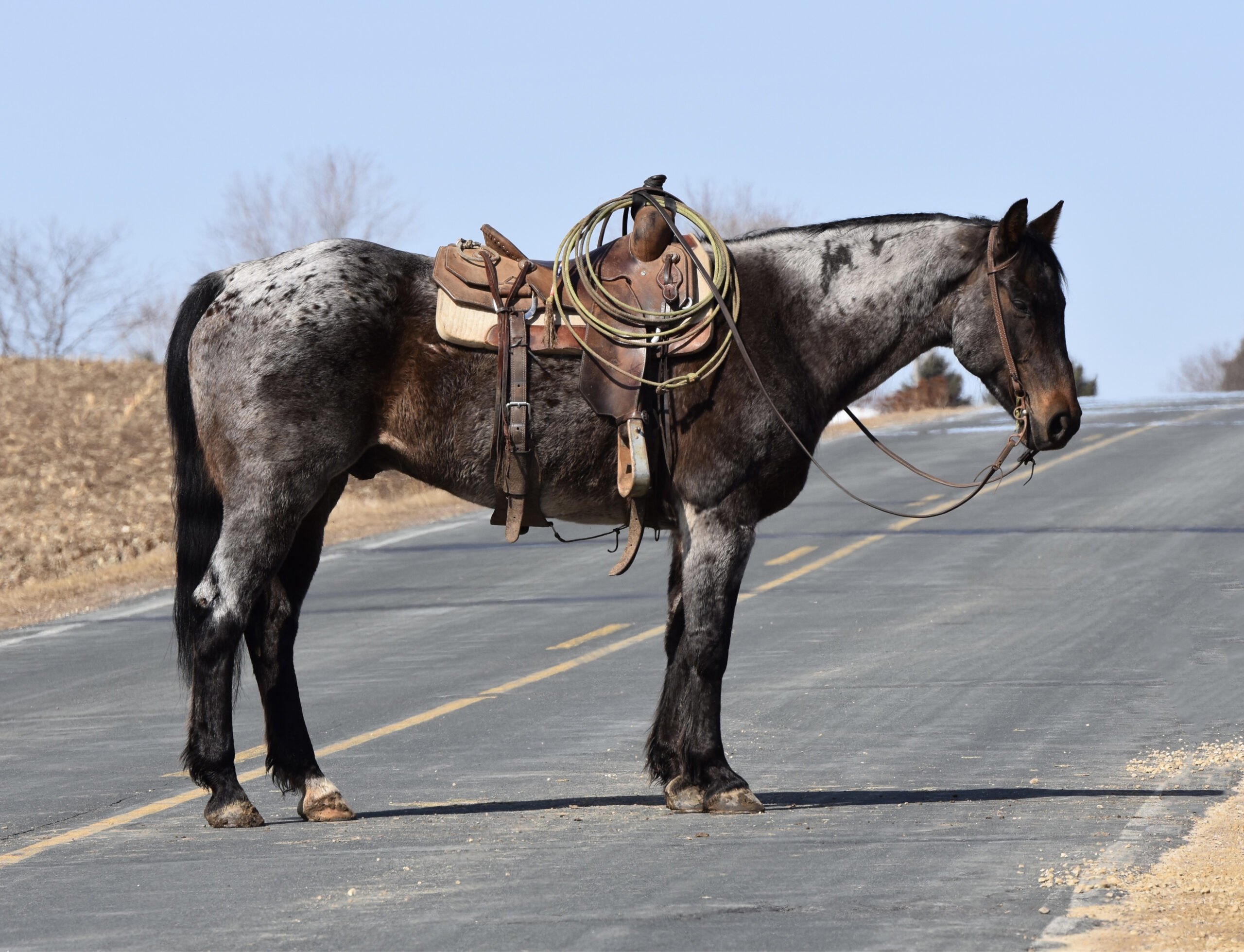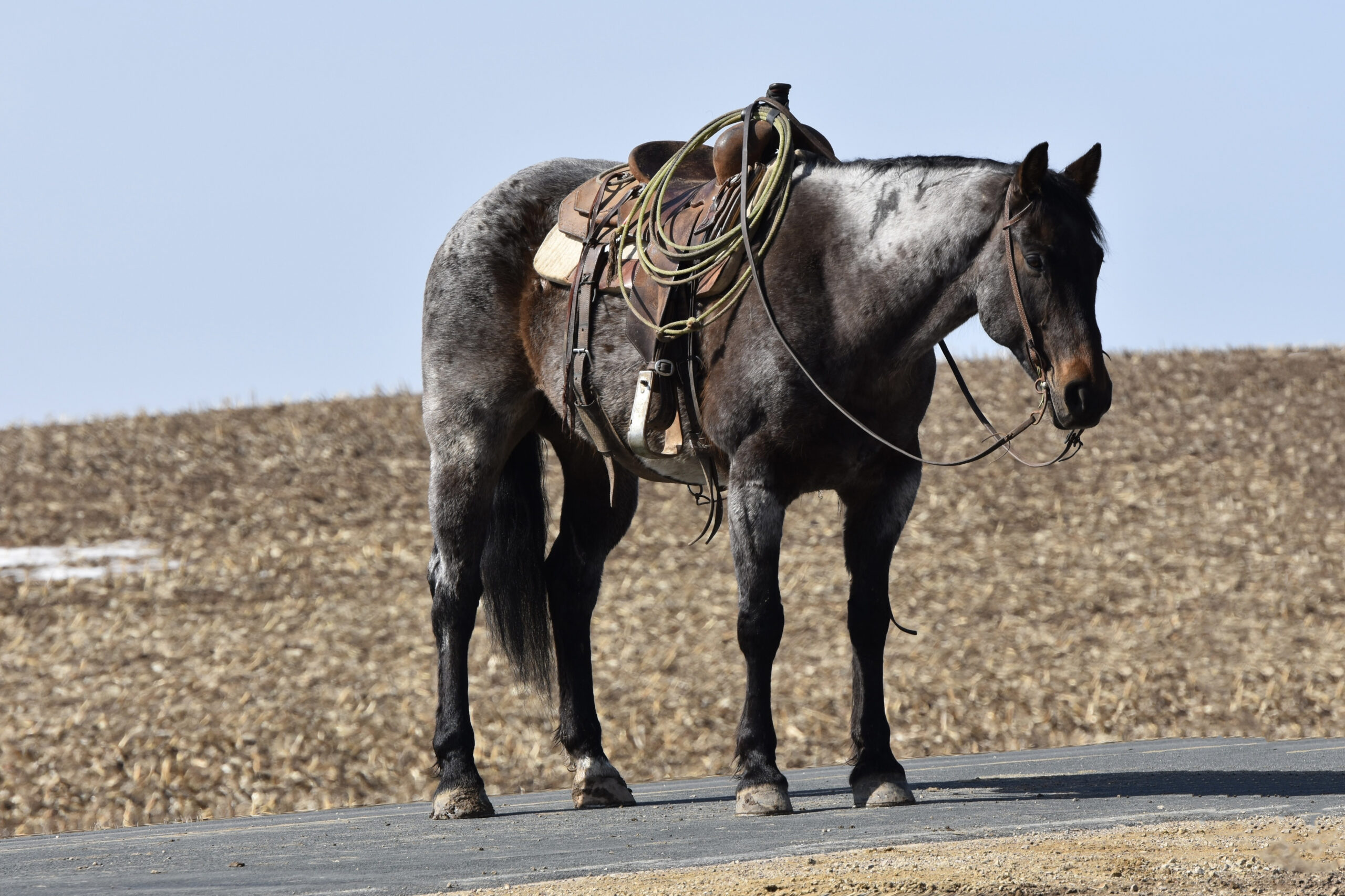He rides inside the arena, out in the field, or down the road. We have put him through our wringer: cats, dogs, machinery, tarps, balls, cattle, and traffic. He has that look that everyone wants to have on their ranch and then turn around and sell for the big times.